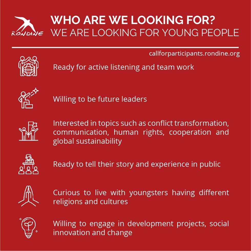 La domanda per i candidati provenienti dal Medio Oriente deve essere presentata entro il 19 aprile 2026. Per ulteriori informazioni sul programma e sulle modalità di candidatura, si prega di visitare il sito web https://callforparticipants.rondine.org/